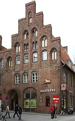 An der Ecke Königstraße befindet sich mit dem Gebäude Dr.-Julius-Leber-Straße 13, seit 1812 der Löwen-Apotheke, eines der ältesten Gebäude der Stadt, zumindest der älteste erhaltene romanische Profanbau von vor dem ersten großen Stadtbrand 1251. Nach außen romanisch prägend ist der Giebel der Rückseite des Hauses von ca. 1230. Aus Anlass des Besuchs von Kaiser Karl IV. (1375) übernachtete Kaiserin Elisabeth in diesem Haus, das für den Besuch extra mit einer hölzernen Brücke über die Königstraße zum benachbarten Eckhaus als der Residenz des Kaisers ausgestattet wurde, damit die beiden unbemerkt von den schaulustigen Bürgern Umgang pflegen konnten. Das Haus hatte durch die Jahrhunderte prominente Bewohner: Tidemann Steen, Thomas von Wickede oder Gotthard von Höveln waren Politiker, deren Ansehen weit über die Grenzen des Stadtstaates hinausreichte. Die Malerin Maria Slavona und ihre ältere Schwester, die Ärztin Cornelia Schorer, wuchsen in mit dem Haus auf, das damals der Familie Schorer gehörte. Auch Erich Mühsam wuchs als Sohn eines Apothekers hier auf und setzte sich als Jugendlicher sehr für den Erhalt des damals gefährdeten Gebäudes ein.