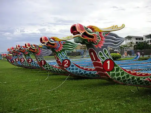 Drachenboote sind offene Boote mit einem langen, leicht gekrümmten Kiel. Der Antrieb erfolgt durch Paddel. Drachenboote sind so gestaltet, dass sie durch Bemalung bzw. Schnitzarbeiten und einen dekorativen chinesischen Drachenkopf und -schwanz einen stilisierten Drachen darstellen.