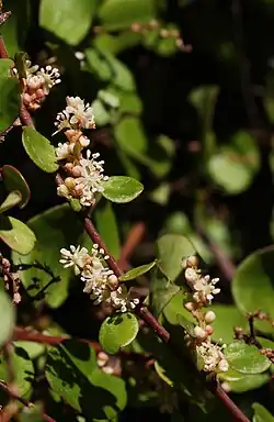 - Schwarzfrüchtiger Drahtstrauch[1] (Muehlenbeckia axillaris (Hook. f.) Walp.): Er kommt in Neuseeland vor.[5]