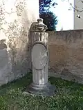 - ↑ Anmerkung zum abgebildeten Gedenkstein: Bzgl. Rillen, (Porträt?)-Relief und Ranke ist eine Ähnlichkeit mit Adam Friedrich Oesers Leipziger Gellert-Denkmal (1774 aufgestellt auf dem Schneckenberg in Universitätsnähe, Nachbildung im heutigen Schillerpark) sowie seinem Sulzer-Gellert-Denkmal von 1781 am Gohliser Schlösschen zu erkennen
