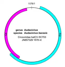 Genomkarte von Circoviridae batCV-SC703, | ||||||||||||||