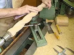 Bei diesem Drehverfahren ist das Werkstück entweder zwischen den Spitzen (Mitnehmer am Spindelstock und Körnerspitze am Reitstock) eingespannt oder einseitig am Spindelstock befestigt. Das Werkstück dreht sich um die Faserrichtung. Das Dreheisen wird auf der Werkzeugauflage aufgelegt und manuell gegen das Werkstück so geführt, dass ein gezielter Schneidvorgang entsteht. Mit dieser Technik werden Artikel hergestellt wie: