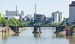 Die historische Drehbrücke in Krefeld-Linn verbindet den Stadtteil Linn mit der Landzunge zwischen dem Linner Rheinhafen und dem Rheinufer.