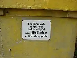 Der Bau der Brücke wurde vom Land Halle/Merseburg finanziert. Der Besitzer des Schlosses Neudeck, Major Lettre, war ebenfalls an der Finanzierung beteiligt. Die Brücke sollte im April 1945 von den abziehenden deutschen Truppen gesprengt werden, um den Vormarsch der sowjetischen Truppen aufzuhalten. Der Bauer Otto Nicklisch verhinderte die Sprengung. Die Brücke war ab 1996 für jeglichen Verkehr gesperrt. Der Verkehr wurde über ein parallel errichtetes Behelfsbauwerk geführt. Auf Grund ihres schlechten Zustandes sollte die Brücke 2006 abgerissen werden. Das Landesamt für Denkmalpflege konnte es verhindern. Gegen den fortschreitenden Verfall wurde jedoch viele Jahre nichts unternommen. Die Brücke wurde ab 2017 saniert und im Jahr 2018 wieder für den Verkehr freigegeben. Das Sanierungsprojekt wurde für den Deutschen Brückenbaupreis 2020 nominiert.