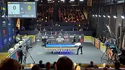 Ab dem Achtelfinale wird bis 50 Punkte ohne Nachstoß gespielt.