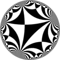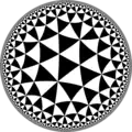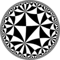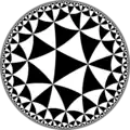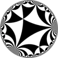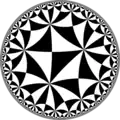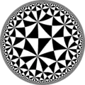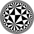Die von den Spiegelungen an den drei Seiten dieses Dreiecks erzeugte Gruppe wird als (k,l,m)-Dreiecksgruppe bezeichnet. Sie hat die Präsentierung