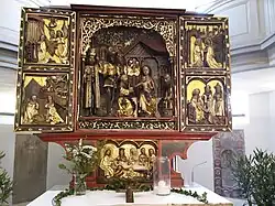Im geöffneten Mittelteil ist die Anbetung Jesu durch die Heiligen Drei Könige zu sehen. Die Seitenflügel zeigen Szenen aus der Weihnachtsgeschichte. In der Predella des Altars ist die Begegnung Jesu mit Maria Magdalena dargestellt. Im geschlossenen Zustand sind auf sechs Tafelbildern ebenfalls Szenen aus der Weihnachtsgeschichte zu sehen.