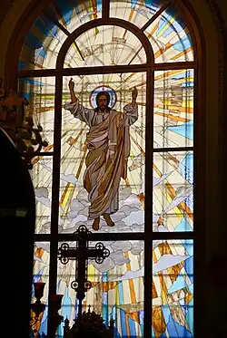 Der Innenraum enthält eine Ikonostase, Glasmalereien, Kunstwerke von Ignati Nivinsky (1881–1933), Petrov-Vodkin und Michail Nesterov sowie einen Mosaikboden von Alexei Schtschussew.[1]