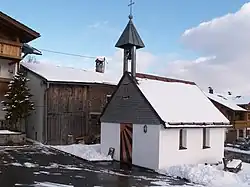 In einem eichenen Türsturz findet sich die Jahreszahl 1657; dieses Jahr wird daher als Jahr der Erbauung der Kapelle angenommen. Im Dachreiter hängt eine Glocke, die in Kempten von Michael Weingarten gegossen wurde. Sie trägt die Jahreszahl 1708 und die Umschrift „AVE MARIA GRATIA PLENA DOMINUS TECUM“. In einer querovalen Kartusche findet sich die Gießerinschrift „IM HOCHFIRST STYFFT KEMPTEN GOS MICH MICHAEL WEINGARTEN“.[1]