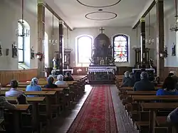 In den 1950er Jahren wurden mannigfache Restaurierungsarbeiten an der Kirche vorgenommen[1], gleichzeitig die Ausstattung der Liturgie der Römisch-katholischen Kirche angepasst. Die katholische Kirchengemeinde ist jetzt Eigentümer des Gotteshauses, das sie der Hl. Dreifaltigkeit geweiht hat.