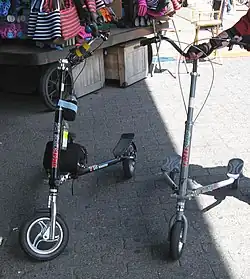 Verschiedene Modelle von Tretrollern und Kickboards für Kinder und Erwachsene sind mit drei Rädern ausgestattet. Eine spezielle Variante ist das Trikke, bei dem sich nicht nur im Zwischenraum der beiden Hinterräder vom Boden abgestoßen werden kann, sondern eine Schwenktechnik das Beschleunigen durch Gewichtsverlagerung ermöglicht. Trikkes gibt es in zwei Nutzungsvarianten: rein manuell (HPV) und elektrisch betrieben (eV). Mit Letzterer sind Geschwindigkeiten von bis zu 25 km/h und eine Reichweite bis 40 Kilometern möglich. Das Modell eV 6.1 ist für den deutschen Straßenverkehr zugelassen.[4]
