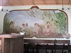 Auf der rechten Seite des Grundstücks steht die sogenannte Schankbude, ein eingeschossiger, kurzer Fachwerkbau. Dieses ebenfalls giebelständig zum Anger ausgerichtete Satteldachgebäude weist links in der Giebelseite eine schmale Eingangstür auf, daneben befindet sich zur Belichtung ein breites Fenster. Die Giebelseite ist verputzt, der Giebel selbst ist verbrettert. Die Längsseite zur Einfahrt zeigt die Fachwerkständer mit Rundbögen. Geschmückt ist der Bau „im Inneren mit volkstümlicher Ausmalung aus der Bauzeit.“[3]