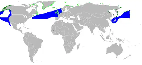 Im Westen Nordamerikas ist das Vorkommen auf die Küsten Alaskas und der Aleuten beschränkt, im Osten des Kontinents ist die Art lückenhaft im äußersten Norden und Osten von Kanada verbreitet. Die Küsten Grönlands sind relativ dicht besiedelt.