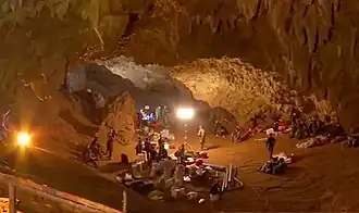 Als am 23. Juni 2018 zwölf Jungen der Jugendfußballmannschaft Moo Pah („Wildschweine“) gemeinsam mit ihrem Trainer nach einem Fußballtraining einen Fahrradausflug zur Tham Luang unternahmen, wurden sie während des Aufenthalts in der Höhle von heftigen Regenfällen überrascht. Da Teile des Rückwegs aus der Höhle überflutet wurden, konnten sie nicht aus eigener Kraft wieder hinausgelangen. Bei einer eingeleiteten Suchaktion fanden Polizisten Ausrüstungsgegenstände der Fußballmannschaft wie Fahrräder und Fußballschuhe im Eingangsbereich der Höhle, woraufhin thailändische Militärtaucher begannen, die Höhle abzusuchen. Am 26. Juni baten die thailändischen Behörden offiziell um Unterstützung bei der britischen Höhlenrettungs-Organisation British Cave Rescue Council. Hierauf flogen die britischen Höhlentauch-Spezialisten Richard Stanton und John Volanthen sowie der britische Höhlenforscher Robert Harper noch am selben Tag nach Thailand. Zudem wurde die Suchmannschaft von 30 Soldaten des United States Pacific Command verstärkt. Mit vereinten Kräften konnte die Gruppe, die sich etwa 400 Meter hinter dem Pattaya Beach genannten Höhlenabschnitt befand, schließlich aus der Höhle gebracht werden.
