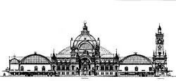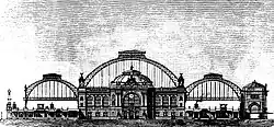Die grundlegende funktionale Gestaltung des Hauptbahnhofs mit der Kombination einer großen Kopfbahnhalle in Tieflage und zwei flankierenden Durchgangshallen in Hochlage gilt als das Werk von Finanzrat Claus Koepcke und Otto Klette.[6] Diese funktionalen Rahmenbedingungen lagen dem Wettbewerb des Jahres 1892 zur architektonischen Gestaltung des neuen Hauptbahnhofes zugrunde. Die Dresdner Bauräte Ernst Giese und Paul Weidner sowie der Leipziger Arwed Rossbach gewannen je einen ersten Preis.[7] Der realisierte Entwurf enthält Elemente beider Entwürfe. Noch im selben Jahr begannen die von Ernst Giese und Paul Weidner geleiteten Bauarbeiten. Der Eisenbahnbetrieb lief im Böhmischen Bahnhof weiter, während die Südhalle entstand, die am 18. Juni 1895 dem Verkehr übergeben wurde. Danach konnte der Böhmische Bahnhof abgerissen und auf seinem Areal mit der Errichtung der Mittel- und Nordhalle begonnen werden. Bis zur Fertigstellung des Gesamtbauwerks diente die Südhalle als provisorische Abfertigungsanlage.[3]