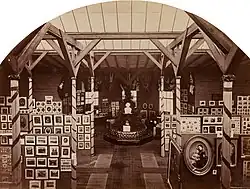 Das Ausstellungsgebäude aus Holz war eigens zu diesem Zweck errichtet worden. Der Architekt war Franz Georg Stammann.[3] Es war mit Flaggen und Wappenschilden der teilnehmenden Länder geschmückt. Im Inneren war neben dem Eingang das Büro der Ausstellungskommission. Ein Glasdach sorgte für Licht. Über dem Eingang wurden auf einem Balkon große Alben präsentiert. An insgesamt sechs Stellwänden und den Wänden waren die Fotografien aufgehängt. In einem Teil waren Sessel um eine Büste von Louis Daguerre verteilt aufgestellt.[4] Die Ausstellung wurde von dem Photographen Wilhelm Champés photographisch festgehalten.[5]