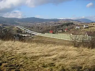 - Auf der Strecke zwischen den Knoten Przybędza und Milówka wurde die durch Węgierska Górka, Cisiec und Milówka verlaufende Landesstraße modernisiert. Der Neubau einer Schnellstraße wurde verschoben. Die Planung für die Modernisierung entstand im Jahr 2006. Der Vertrag mit den Unternehmen Eurovia Polska S.A. und Eurovia Verkehrsbau Union GmbH wurde am 7. Juli 2008 unterzeichnet. Die Fertigstellung erfolgte am 20. Januar 2010. Die Kosten betrugen 33 Mio. Złoty (ca. 8 Mio. Euro).[42][39]