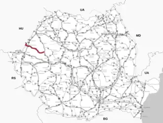 | Straßenende: | Vărșand (46° 37′ 51″ N, 21° 19′ 45″ O) | ||||||||||||||||||||||||