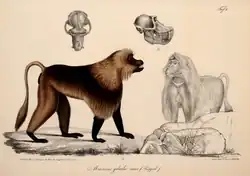 - Der Nördliche Dschelada (Theropithecus gelada gelada) Rüppel, 1835. Er lebt nördlich des Tanasees und westlich des Tekeze-Setit und hat eine braune Mähne und die Haare rund um den haarlosen Brustfleck sind eisengrau.[6]