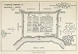 Emin ging nach Wadelai, die übrige Garnison blieb jedoch vor Ort und trat dem Mahdi Heer am 28. November 1888 in der sog. Schlacht von Dufile entgegen, in der die Angreifer abgewehrt werden konnten.[4][5][6] Im Januar 1889 zog aber schließlich auch die übrige Garnison aus Dufile ab, um sich wiederum Emin im Süden anzuschließen. Der Ort wurde somit aufgegeben.