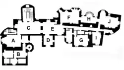 Innen durchbrach Salvin Wände, um die Äußere Halle, eine neue Galerie im 1. Obergeschoss, einen Billardraum, eine neue Bibliothek und einen Salon zu schaffen.[83] Der größte Teil der Holzpaneele aus dem 17. Jahrhundert im Empfangszimmer und in der Halle musste im Rahmen des Umbaus entfernt werden.[84] Im Laufe seiner Arbeiten scheint Salvin eine Reihe gerollter Schmiedeeisenträger verwendet zu haben, um die sich ergebenden Fehlstellen in der Struktur des Gebäudes zu überbrücken, damals eine frühe Anwendung dieser Technologie.[85] Nach seiner Fertigstellung wurde das Haus mit neu erworbenen Kunstgegenständen aus dem 16. und 17. Jahrhundert, zwei italienischen Bronzekanonen und einem ausgestopften Eisbären ausgestattet.[84][86]