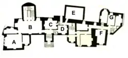Als George Luttrell 1571 die Burg erbte, war sie ziemlich verfallen und die Familie zog es vor, in ihrem Haus, dem heutigen Court House in East Quantoxhead zu leben.[46] 1617 beauftragte George Luttrell den Architekten William Arnold mit dem Entwurf eines neuen Hauses im „unteren Hof“ der Burg. Arnold war ein bekannter Architekt im Südwesten Englands und hatte den Bau von Montacute House und den Umbau von Cranborne Manor House in der Nähe geleitet.[48] Der Neubau dehnte sich auf einige der existierenden Gebäude und Mauern aus, sodass ein jakobinisches Herrenhaus des 16. Jahrhunderts mit symmetrischer Fassade und quadratischen Türmen zwischen den Mauern der alten Burg geschaffen werden konnte, das vom Donjon überragt wurde.[49][50] Das Gebäude wurde nach der neuesten Mode ausgestattet, einschließlich ornamentaler Stuckdecken.[50] Das Projekt wurde fast dreimal so teuer wie ursprünglich geplant und kostete Luttrell mehr als £ 1200.[48][51][52]