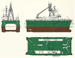 Das Schiff verfügte über vier Anker mit jeweils eigener Ankerwinde – jeweils ein System an den vier Ecken des Arbeitsdecks.