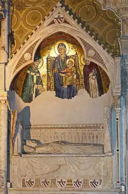 Das Grabmal von Wilhelm Durandus ist im rechten Querschiff der römischen Kirche Santa Maria sopra Minerva. Das Wandgrabmal befindet sich links von der Cappella Carafa.[1] Das Mosaik in der gotischen Nische stammt von Giovanni Cosmato[2] (1296): In der Mitte ist Maria mit Kind dargestellt, fürbittend links der Heilige Privatus von Mende und rechts der Heilige Dominikus. Unter dem Durandusgrabmal befindet sich das Grabmal für Onofrio Camaiani († 1574). Die Inschrift lautet:[3]