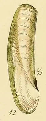Durchscheinende Scheidenmuschel (Phaxas pellucidus) (aus G. B. Sowerby II, 1859: Taf. 2, Fig. 12[1]) | ||||||||||||