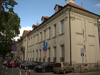 - ↑ Piotr Blank (1742–1797) war ein Warschauer Bankier und Finanzberater vom polnischen König Stanisław August Poniatowski bis 1784. Er stammte aus einer Familie französischer Hugenotten, die im 16. Jahrhundert nach Berlin emigriert waren. Ein weiterer Palast in seinem Besitz war der Blank-Palast.