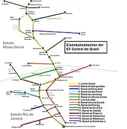 Die EFCB - Linha Auxiliar entlastete die etwas südlicher gelegene EFCB - Linha do Centro, die von Rio de Janeiro in das zentrale Minas Gerais hinauf bis zum Fluss Rio São Francisco führte.