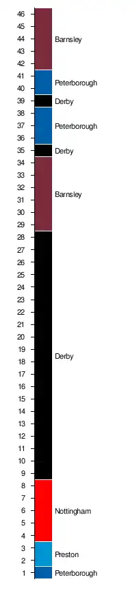 | Derby County | 2:0 | 2:2 | 3:2 | 1:2 | 1:0 | 1:3 | 0:1 | 1:1 | 2:1 | 1:1 | 3:1 | 2:2 | 0:0 | 1:2 | 1:1 | 1:0 | 1:0 | 1:2 | 1:0 | 2:0 | 2:1 | 0:0 | 1:0 | |