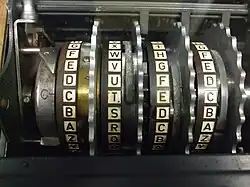 Nun musste der Schlüssler noch die vier Walzen in eine definierte Anfangsstellung drehen, und die Enigma‑M4 war zur Verschlüsselung oder auch Entschlüsselung von Funksprüchen bereit.[7]