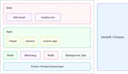 Das zugrunde liegende Webframework Frappé wird als separates Open-Source-Projekt gepflegt.[8] Frappé begann als webbasiertes Metadaten-Framework, das von Protégé inspiriert wurde, obwohl es sich anders entwickelt hat. Die Architektur von Frappé ermöglicht eine schnelle Anwendungsentwicklung (RAD).