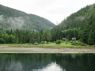 - ↑ Andrew Scott: The Encyclopedia of Raincoast Place Names: A Complete Reference to Coastal British Columbia. Harbour Publishing, Madeira Park, BC 2009, ISBN 978-1-55017-484-7, S. 75 (englisch).
