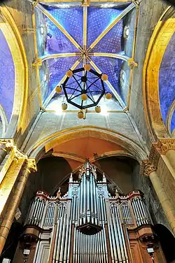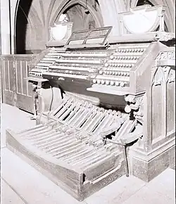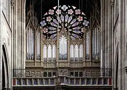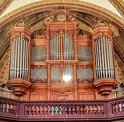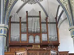 mehrfach (1896, 1910/11, 1935/36) von Steinmeyer umgebaut, 1919 von Steinmeyer um ein drittes Manual erweitert (III/57)