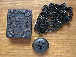 Ebonit ist aus Naturkautschuk und Schwefel hergestellter besonders harter Gummi, der gut spanabhebend bearbeitet werden kann. 1851 wurde Ebonit von Charles Goodyear[1] zum Patent angemeldet. Der Name des fast schwarzen Werkstoffs nimmt auf Ebenholz (englisch ebony) Bezug.