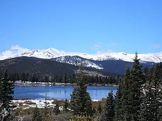 Er liegt etwa auf halber Strecke des Mount Evans Scenic Byways von Idaho Springs zum Mount Blue Sky (ehemals Mount Evans, 4348 m).
