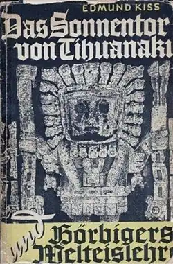 Während dieser Zeit, in der er nach unbestätigten Angaben auch als Leiter eines Museums in La Paz tätig war,[7] festigte sich seine Überzeugung einer uralten arisch-atlantischen Kultur, die sich bis nach Südamerika erstreckt haben soll, wobei die südamerikanischen Frühkulturen von nordischen Menschen beeinflusst sein sollten. Diese Gedankengänge publizierte er in einem Aufsatz „Nordische Baukunst in Bolivien“ in der Zeitschrift „Germanien“, Jahrgang 1939, sowie in seinem Buch „Das Sonnentor von Tihuanaku und Hörbigers Welteislehre“. Zu Beginn der 30er Jahre wurde Kiss durch einen auflagenstarken Weltentstehungsroman einem größeren Publikum bekannt („Das gläserne Meer“, 1930), dem ersten Teil einer Tetralogie über Atlantis („Die letzte Königin von Atlantis“ 1931, „Frühling in Atlantis“, 1933, „Die Singschwäne von Thule“, 1937).[8] Zu diesem Zeitpunkt war Kiss bereits überzeugter Anhänger der Welteislehre, die er in seinen Romanen durch die Beschreibung der durch Mondeinstürze ausgelösten Naturkatastrophen plastisch verbildlichte, während er gleichzeitig in mehreren Artikeln der Zeitschrift „Germanien“ durchaus nüchterne wissenschaftliche Abhandlungen über Themenkreise des germanischen Brauchtums verfasste – etwa einen Artikel über „Altgermanische Bodenvorratswirtschaft“ – die keinerlei Bezug zur WEL aufweisen. Andererseits verband Kiss in seinen Büchern die Mondeinsturzszenarien Hörbigers mit der Atlantis-Überlieferung Platos und der Vorgeschichte der Germanen. Schon 1933 verteidigte er die Welteislehre leidenschaftlich in einer Kampfschrift.