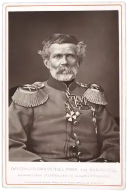 Am 17. Juni 1885 ereilte ihn bei einer Kur in Karlsbad der Tod. Kaiser Franz Joseph, gegen den er einst Krieg geführt hatte, ließ seinen Sarg von einer österreichischen Ehreneskorte heimwärts geleiten. Er wurde auf dem Frankfurter Hauptfriedhof neben dem Alten Portal beigesetzt.[2] Seine Memoiren, die bereits 1874 veröffentlicht wurden, schrieb sein Adjutant, der damalige Hauptmann Paul von Collas.