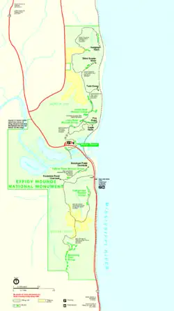 Effigy Mounds National Monument ist über den Iowa Highway 76, der hier als Teil der Great River Road am Mississippi als National Scenic Byway ausgewiesen ist, vom rund fünf Kilometer südlich gelegenen Marquette am U.S. Highway US 18 erreichbar. Besucher finden im Informationszentrum eine Ausstellung zu den Mounds, ihren Erbauern und der Kultur der Woodland-Periode, sowie den späteren Indianern der Region. Neben dem Besucherzentrum liegen drei große konische Mounds. Die Great Bear-Gruppe ist auf einem Wanderweg etwa 1,5 km entfernt. Die Marching Bear-Formation liegt im Südteil und ist zu Fuß von einem Parkplatz am Mississippi oder auf einer pro Richtung etwa einstündigen Wanderung vom Besucherzentrum zu erreichen. Außer den Mounds, den Wäldern und Prärien hat das National Monument einen weiten Blick über den Fluss vom Hochufer aus zu bieten. Auch hier sind die Aussichtspunkte nicht mit dem Auto, sondern nur zu Fuß erreichbar.