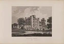 Der ehemalige Sitz der Earls of Eglinton liegt knapp südlich der Stadt Kilwinning. Die ursprüngliche Burg wurde 1528 vom Earl of Glencairn niedergebrannt.[1] Das heutige Landhaus wurde von 1797 bis 1802 im neugotischen Stil erbaut. Es hatte einen zentralen, 30 Meter hohen, runden Donjon und vier 21 Meter hohe, äußere Türme; nur Culzean Castle übertraf es in Erscheinungsbild und Großartigkeit. Der Grundstein zum neuen Landhaus wurde 1797 gelegt und der 12. Earl of Eglinton war stolz, dass die Zeremonie von Alexander Hamilton aus Grange, Großvater des US-amerikanischen Politikers Alexander Hamilton, geleitet wurde.[2]