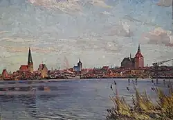 - Blick vom Mühlendamm auf Nikolai- und Petrikirche (o. J.), Kulturhistorisches Museum Rostock