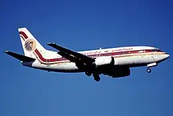 - Am 7. Mai 2002 machte eine mit 55 Passagieren und zehn Crew-Mitgliedern besetzte Boeing 737-500 der Egypt Air mit dem Luftfahrzeugkennzeichen SU-GBI auf dem Weg von Kairo nach Tunis sechs Kilometer vor dem Flughafen eine Bruchlandung. Bei dem Unfall starben 11 der 56 Passagiere sowie drei der sechs Besatzungsmitglieder (siehe auch Egyptair-Flug 843).[67]