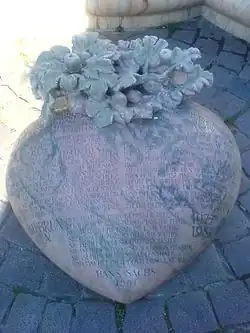 Die barockisierende Beckeneinfassung besteht aus weißgrauem Marmor, Teile der Basis sind aus farbigem Marmor. Die Marmorskulptur Rosenstock auf der Westseite besteht aus grün und rosé gemaserten portugiesischem Marmor. Weber hat aus den grünen Sedimenten die Rosenblätter herausgearbeitet, aus den roséfarbenen die Blüten.