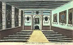 Eine wichtige Rolle bei den herrnhuterischen Anfängen in Norden spielte der Mennonitenprediger Johannes Deknatel.[4] Der gebürtige Norder war ab 1720 Hilfsprediger und fünf Jahre später Inhaber einer Predigerstelle der Mennonitengemeinde Amsterdam. 1736 kam es dort zu einer Begegnung zwischen ihm und Zinzendorf.[5] Sie führte dazu, dass sich Deknatel der herrnhuterischen Theologie öffnete, ohne seine mennonitischen Grundüberzeugungen aufzugeben. Ende der 1730er Jahre richtete er im Haus seiner in Norden wohnhaften Schwester, einer verwitweten Blaupot, einen Hauskreis ein,[6] aus dem sich 1742 regelmäßige gottesdienstliche Zusammenkünfte entwickelten. Ort der Gottesdienste war ein angemieteter Saal im Hotel Heeren-Logement. Das Hotel befand sich Am Markt 49 (heute: Evangelisch-reformiertes Pfarramt und Gemeindebüro) und konnte 1776 von der Brüdergemeine käuflich erworben werden.[7] 1748 konstituierte sich der Herrnhuter Kreis als Sozietät und ab 1757 – verbunden mit der Einführung ihres ersten Predigers am 7. Mai 1757 – als Stadtgemeine Norden. Das letztgenannte Datum galt den Norder Herrnhutern in der Folgezeit als offizieller Gründungstag ihrer Gemeinde.[8] Dies bestätigt auch eine Gedenktafel, die ihren ursprünglichen Platz in der Herrnhuter Kapelle hatte und heute im Alten Rathaus, dem Norder Heimatmuseum, zu besichtigen ist.