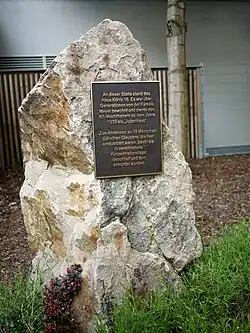 „Diese Stelle“ ist nicht mehr ganz richtig. Ursprünglich war die Tafel am Erweiterungsbau der Sparkasse, Ecke Wallstraße angebracht. Nach dem Umbau zum Medienhaus wurde die Gedenktafel 2009 an ihrem heutigen Platz befestigt.