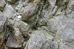 Bei diesem künstlich geschaffenen Aufschluss stehen 60 Grad steilstehende Gesteine der Alpenmolasse an. Sie werden aus Sandsteinen, Konglomeraten und Mergelsteinen gebildet. Die Obere Meeresmolasse überlagert im Aufschluss die Gesteine der verwitterten Unteren Süßwassermolasse. Im Steinbruch sind in den Schichtenfolgen tierische Fossilien und Sedimentstrukturen zu erkennen.