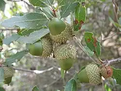 - Kalifornische Steineiche (Quercus agrifolia Née 1801): Sie kommt vom westlichen Kalifornien bis ins mexikanische Baja California Norte vor.[28]