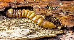 Larve in Eichenrinde